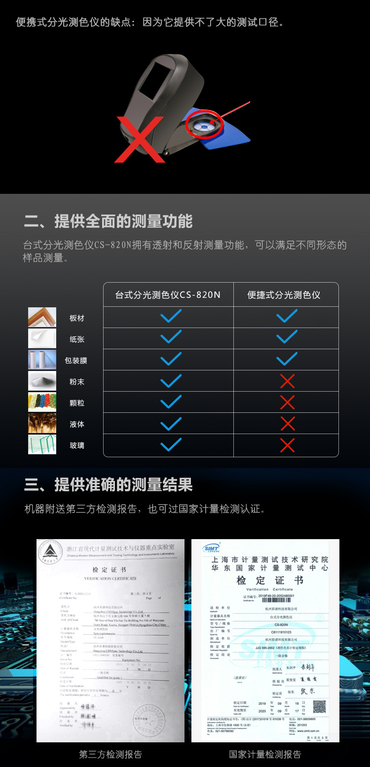 CS-820N臺式分光測色儀液體粉末顆粒色差檢測配色調色