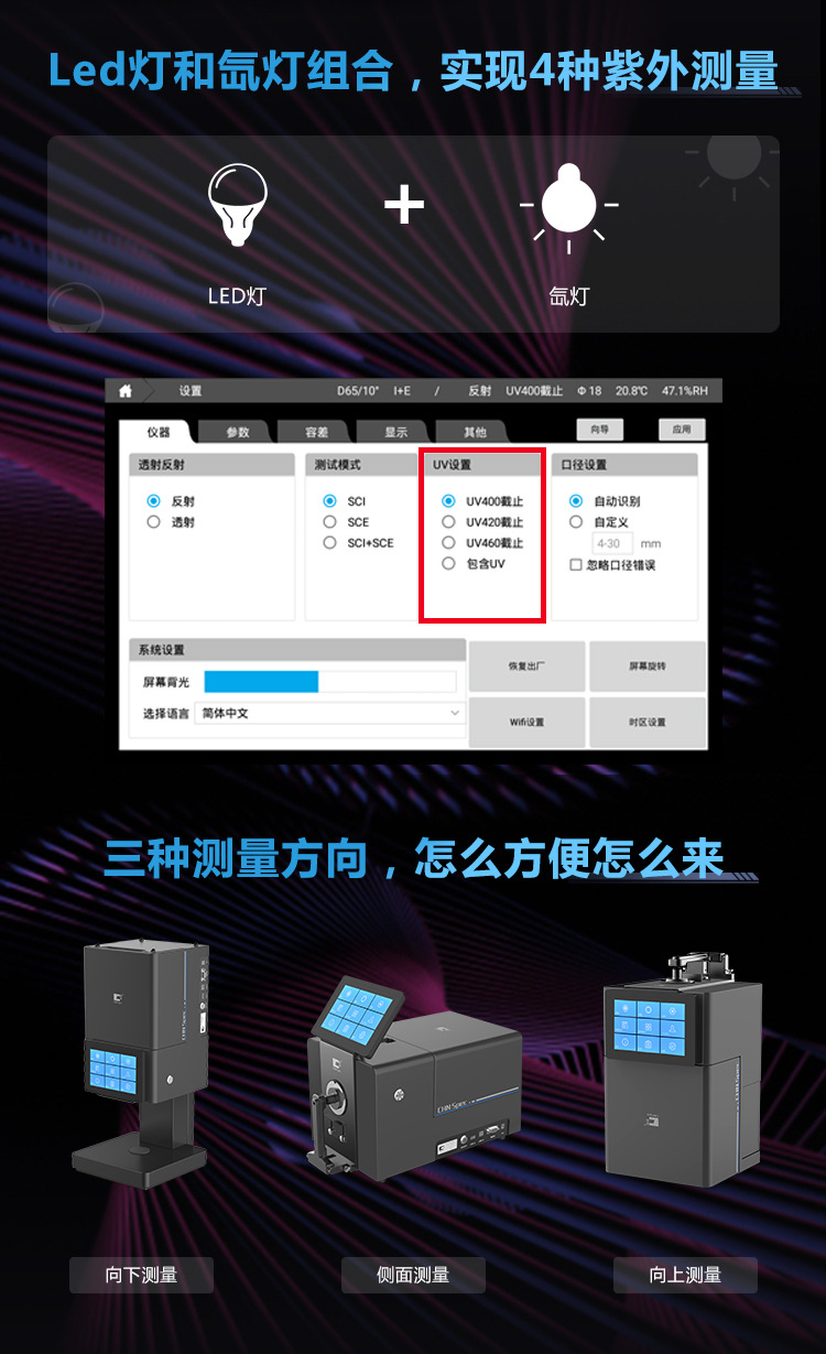照明方式:反射D/8°、透射D/0°(包含UV/排除UV測量),