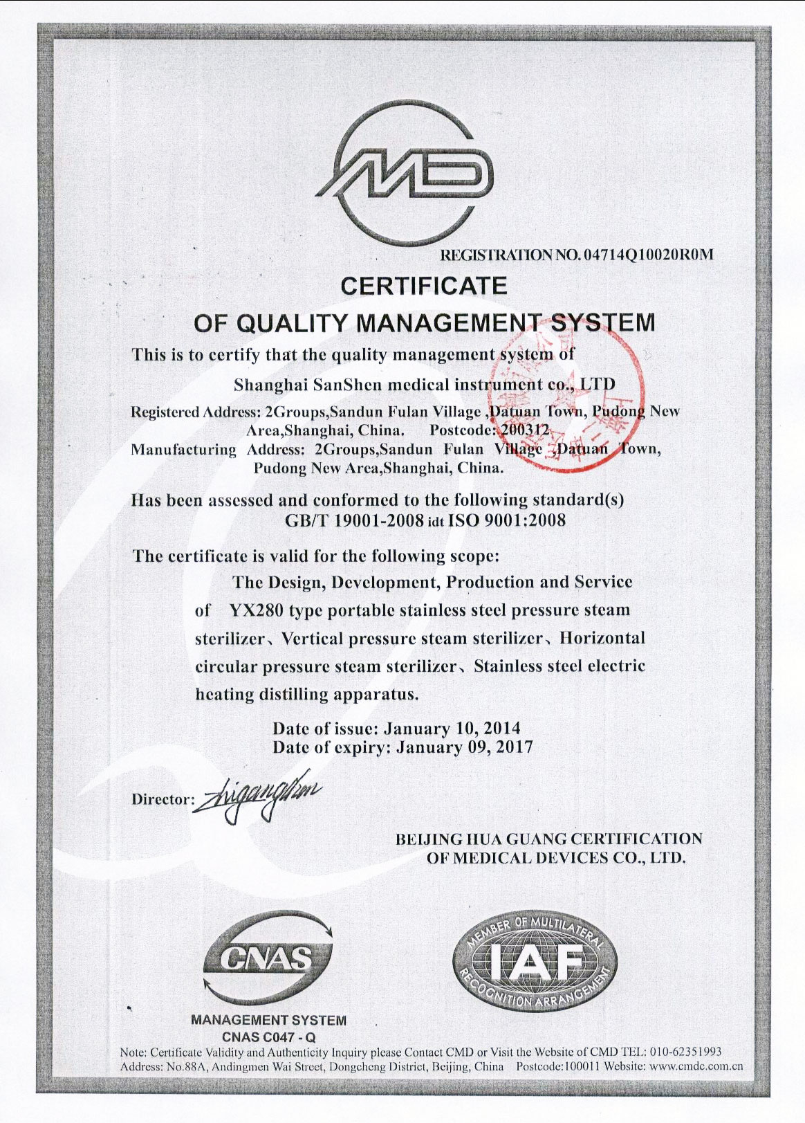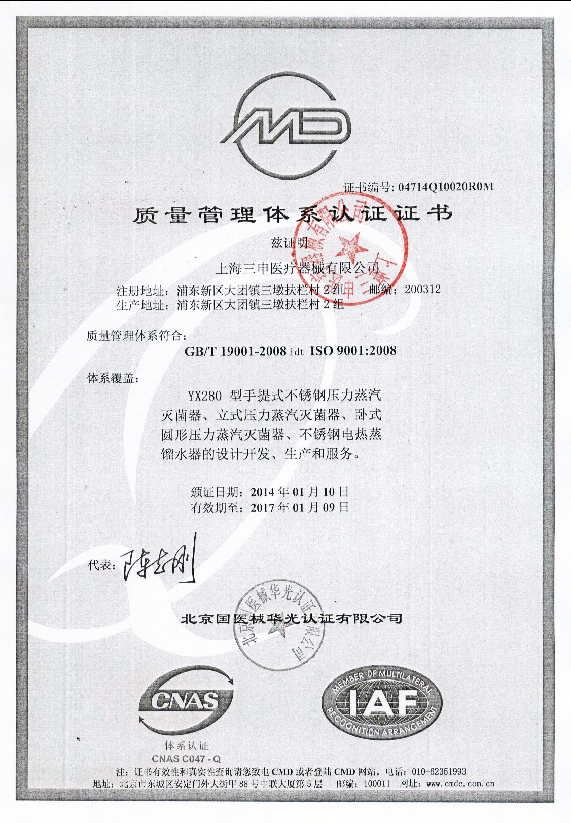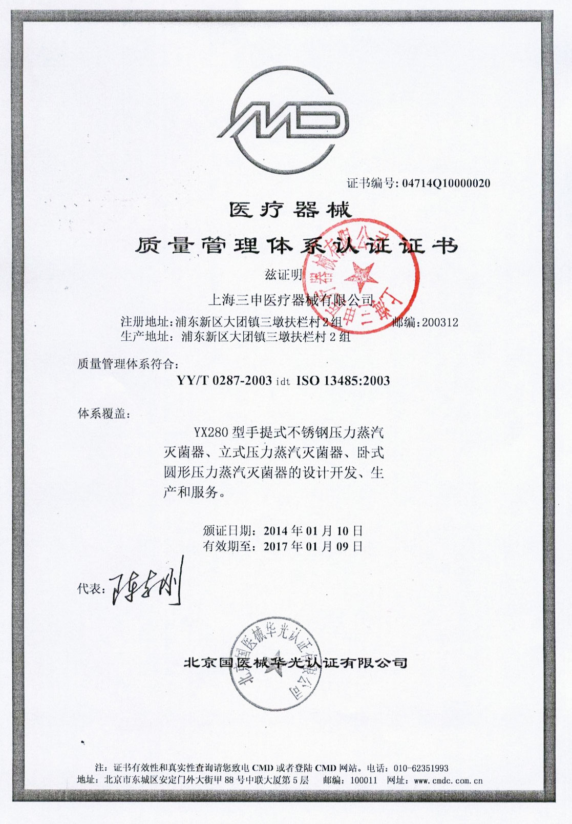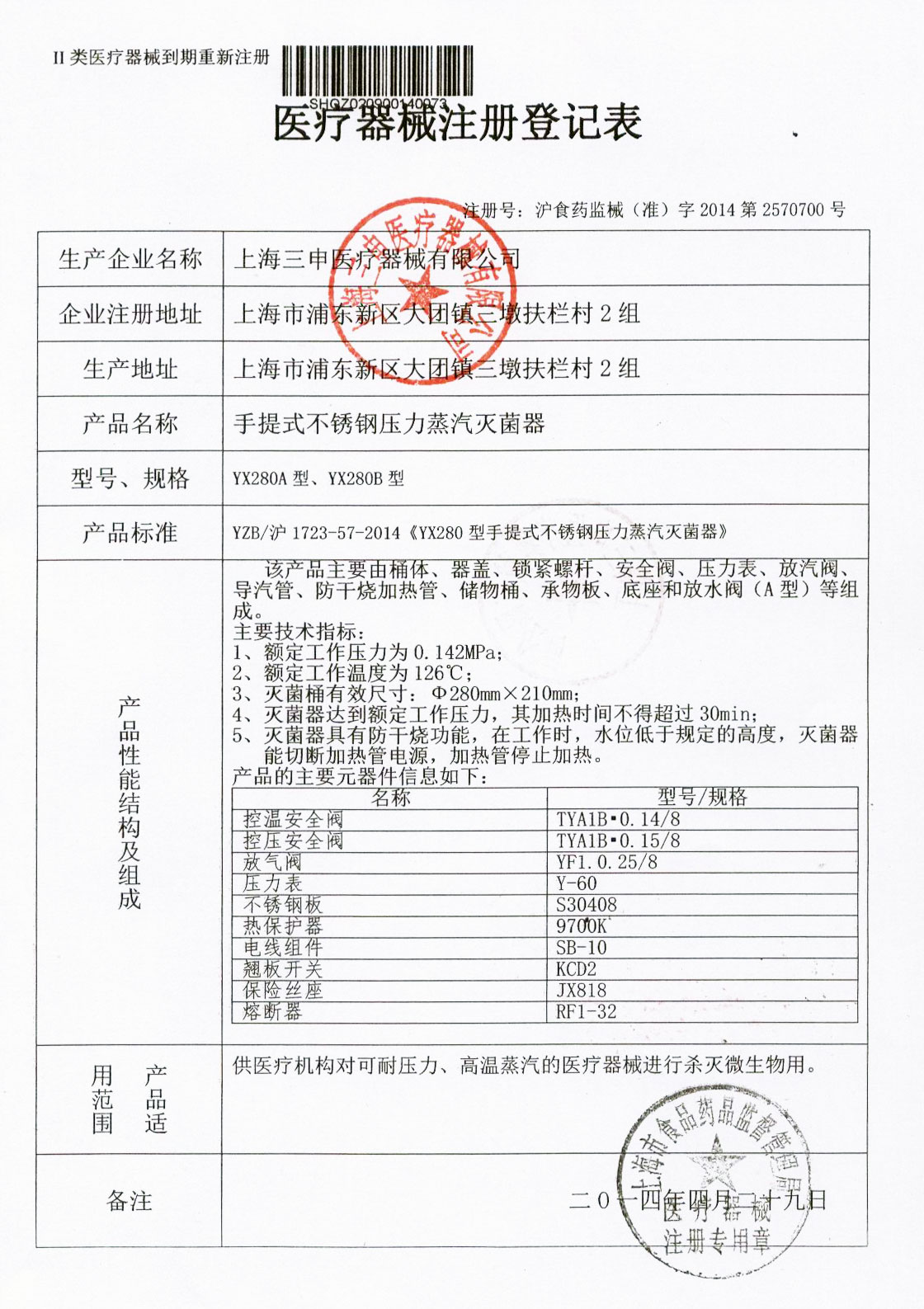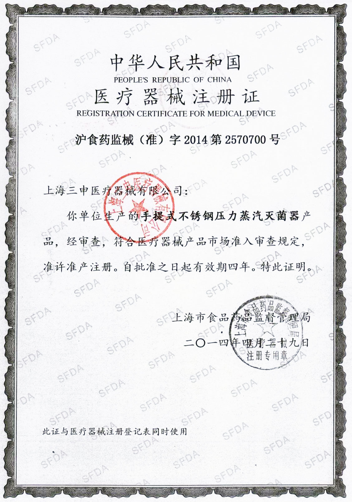 • 有醫療器械產品注冊證和特種設備制造許可證(壓力容器)